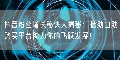 本文介绍如何通过粉丝自助购买平台提升抖音影响力,成为网红。探讨社交媒体营销的力量,以及如何通过该平台实现流量变现。